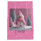 Pink Crocheted Christmas Snowman Medium Gift Bag