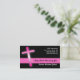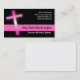 Customisable church business cards that feature a pink cross with a white glow around the edges. Customise all text fields with your own church's information. God Bless