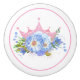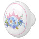 Pretty ceramic drawer pull knob, with graphics of a pink crown and blue flowers, with a thin pink frame around the outside edge. Customise to add any text you want. Perfect for the little princess room.