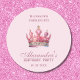 Pink Crown Girl Princess Birthday Thank You Classic Round Sticker
