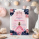 Pink Crown & Navy Blue Floral Princess Mis Quince Invitation