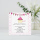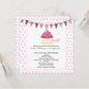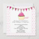 This precious baby shower invitation is a wonderful way to invite your guests to join you in celebrating your new arrival. This design has a bright white background with pink polka dots. Across the top there is a pink and white pennant style banner. In the centre, there is a fun cupcake with bright pink icing and a fun pink peppermint candy. On the front is a sweet saying, "Love, Joy, and wonderful dreams all the sweet things a new baby brings..." Below that there is a place for all of your shower details.