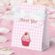 A sweet thank you box depicting a delicious pink Cupcake and gingham checks.