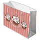 Pink candy stripes and cupcakes decorate this holiday gift bag. This bag is great for all girls, teens, women, a birthday, baby shower, holidays, etc... The design is from original art.