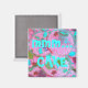 A pile of brightly coloured cupcakes decorated with marshmallows, chocolate stars, hearts, jelly sweets. sprinkles and glitter - ready to eat! Fridge magnet with a pink, blue, yellow, green, red and silver customisable design for you to personalise with your own text, pictures and ideas. The text can easily be changed using the template provided or click the 'Customise It' button to make further alterations. An original photograph stylised using digital techniques by Jess Perry.