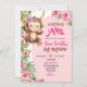 Pink Curious Monkey Safari Theme Birthday Invitation