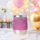 Pink Custom Thermal Wine Tumbler. Add a touch of glamour to your daily ensemble with our modern design in vibrant fuchsia pink. Infused with glitter and sparkly elements, this design radiates a dazzling charm that is both feminine and chic. Perfect for those who love to stand out, this piece effortlessly combines contemporary style with a hint of playful sophistication, making it an essential addition to your day!