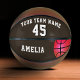 Pink Custom Basketball Ball with Player Team, Name and Number. The design has a vivid pink basketball on the side. Perfect gift for a basketball player, teammates, coach,... Great for a girl. Personalise it with your basketball team name, player number and player name
