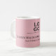 This custom corporate coffee mug features a sample logo placed at the top which you can replace with your own custom business or company logo. The corporation or business name is printed below the logo, followed by the location. The background is a dusty pink bubblegum colour. It makes a great gift for clients or employees.