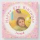 Celebrate your little one’s special day with this charming square stone coaster, designed to bring warmth and joy to your birthday party décor. Featuring a soft light pink background adorned with hand-painted watercolor confetti, this coaster frames a round photo insert where you can add your child’s photograph to create a truly personalised keepsake. A customisable "Happy Birthday" greeting elegantly curves around the centre image, and you can easily update it to include your child’s age or change it to any message of your choice. Below the photo, your child’s name arches along the picture ring, making this coaster a unique and sentimental memento. Whether you're using it as a party favour or a thoughtful gift, this coaster is a beautiful way to commemorate their special day.