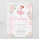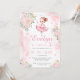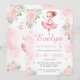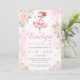 Cute pastel pink little ballerina birthday girl invitation with pink gold flowers.