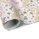 This delightful girly wrapping paper features a playful mix of Irish imagery including clovers, shamrock gold coins, a pot of gold at the end of a rainbow, and a charming leprechaun hat. The design is adorned with the heartwarming message, "Wishing you endless luck and joy!" The pattern's unique curvy style, created by the falling coins in an S design, adds an extra element of fun and whimsy.