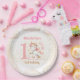 Pink Cute Happy Unicorn Girl 1st Birthday Paper Plate