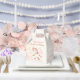 Birthday party medium gable favour box with a cute happy unicorn, balloons, golden stars and clouds in soft shades of pink and beige. You can choose from 3 sizes of these gable favour boxes. Easily personalise the text. - Kate Eden Art