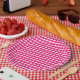 Simple and sweet Cute Hearts Pattern Paper Plates with a repeating pattern of small pink hearts. Text may be added to this design to give it a personal touch.
