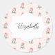 Pink Cute Owl Watercolor Pattern Monogrammed Classic Round Sticker