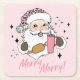 Pink Cute Santa, Boujee Santa w/ Stanley Belt Bag Square Paper Coaster