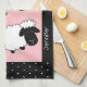 Pink Cute Sheep Illustration Monogrammed Tea Towel