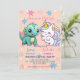 Pink Cute Unicorn dinosaurs rainbow Birthday party Invitation