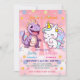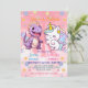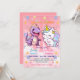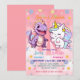 Pink Cute Unicorn dinosaurs rainbow Birthday party Invitation