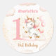 Pink Cute Unicorn Girl 1st Birthday Classic Round Sticker