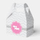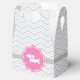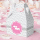 Send your guests home with a little extra wag and wiggle! This adorable favour box features a sweet pink dachshund framed in a scalloped medallion on a chic grey chevron background. Stylish yet playful, it’s perfect for holding small treats, toys, or party favours.