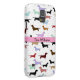 A great Galaxy S5 case that is perfect for any dog lover. It features a white background with little weenie dogs all over it. A pink stripe runs through the centre. You customise the text in the centre.
