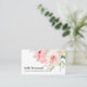This modern and sophisticated business card design features a glamourous illustration of a blush pink dahlia and intense pink peony flowers on a white background with bold name or business name and title.