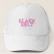 Wear your rank on your head! This feminine Pink Daisies Martial Arts Black Belt Hat features a pink flower font and a white background. It makes a unique gift idea for the martial artist girl or woman for a black belt promotion test or exam.
