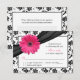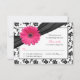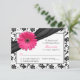 Pink Daisy Black White Floral Damask Wedding RSVP Card