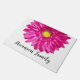 This welcome mat has a large, pink gerbera daisy and a design-your-own editable family name. Add your name or a message to welcome guests to your home.