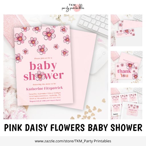 Pink Daisy Flowers Baby ShowerDesigned by TKM Party Printables