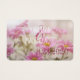 The front features a romantic unfocused floral background filled with Pink Daisies. There's a space for you to hand-write your guest's name and the table number. The back has the same pink flowers with a space for your names and the date.