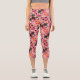 Pink Daisy Flowers And Bumble Bee Pattern Capri Leggings