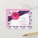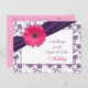 The text on this hot pink gerbera daisy violet purple and white damask recipe card for the bride to be is fully customisable. You can change it using the personalise option. For more extensive changes to the postcard, including changing the font, font colour, or font layout, choose the customise option. This pink gerber daisy recipe card can be enclosed in the matching bridal shower invitation so that bridal shower guests can fill out the back with their favourite recipes and bring the card with them to the shower as a wedding keepsake for the bride to be. You could also use this in a birthday party invitation by changing the text on both the invitation and this card. The matching invitation is shown below.