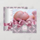Pink Damask Baby Girl Photo Christening Invitation