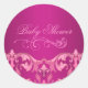 Pink Damask Baby Shower Envelope Sticker/seal Classic Round Sticker