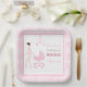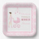 Pink Damask Brunette Woman Baby Shower Paper Plate