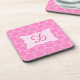 These stylish pink damask coasters personalised with a monogram initial are great for entertaining. This modern design pattern features pink and light pink damask art pattern. A pink emblem provides an area for the custom monogram. The damask original art by Phyllis Dobbs is very stylish and sophisticated as well as very trendy. The pink damask design is on a lighter layered shade of the pink. These coasters coordinate with other products in this store and are fully customisable.