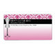 A grey dress form stands upon a bright pink reflective surface on this magenta damask patterned shipping label. A personal or business name stands out in the black ribbon with a return address below. Great for fashion designers, dressmakers, tailors, or those breaking into the fashion field. Available with matching products.