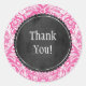 Pink Damask Pattern Flower Chalkboard Customisable Classic Round Sticker