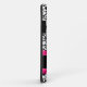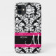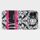 Show off your personal style in a fun way with this black damask with pink accent personalised phone case.