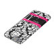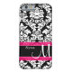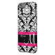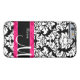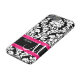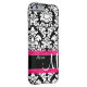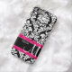 Show off your personal style in a fun way with this black damask with pink accent personalised phone case.