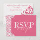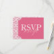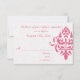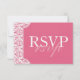 This customisable wedding invitation response card is a pretty shade of pink in a classic, damask pattern with the requested information regarding RSVP. The flip side has the acronym "rsvp" twice in two shade of rosy pink. It is fully customisable for personalising to suit your needs.