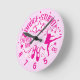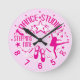 Dancer's Pink Dance Studio Clock. Turn your home into your own private Dance Studio with this professional, fun and funky dance studio wall clock. This dancing themed clock has a silhouette of a dancing girl, ballet shoes and tap shoes with music notes and stars. At the top of this dance clock it has the words, 'DANCE STUDIO'. The numerals consist of hour marks with, and 5,6,7,8, and the words 'Stepping Time'. This Dance Studio clock is ideal fun for dancers of all ages and dance styles who love to practice their dance moves at any time of the day! This trendy novelty Dance Studio clock makes the ideal gift for Dancers and Dance Teachers, etc. Great fun for the for your home or any dance studio or place where dance classes are held! Black and yellow Dance Studio clock also available in store!