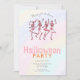 Pink Dancing Skeletons Rainbow Halloween Party Invitation