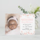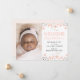 Customise this modern and chic baby birth announcement card with your sweet baby's photo and details. The card features pretty pink watercolor dandelions and your baby's details in modern type/font.