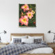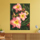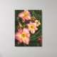 This wrapped canvas features a photograph by Jayne Wilson of pink daylilies with yellow centres. The photograph has been treated with a water colour filter in Photoshop Elements, giving it a painterly feel.