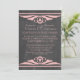 Elegant and chic Deco Chalkboard Wedding Invitation featuring a trendy chalkboard texture look background and a pair of light pink art deco swirl borders. This lovely wedding invitation is perfect for an art deco 1920's themed wedding. Easy to customise, simply add your wedding details. Click "Customise It" to find additional personalisation options.