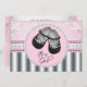 Adorable black baby shoes elegant pink and silver grey diamonds and pearl baby shower invitation. This sweet girly baby shower invitation is easily customised for your event.